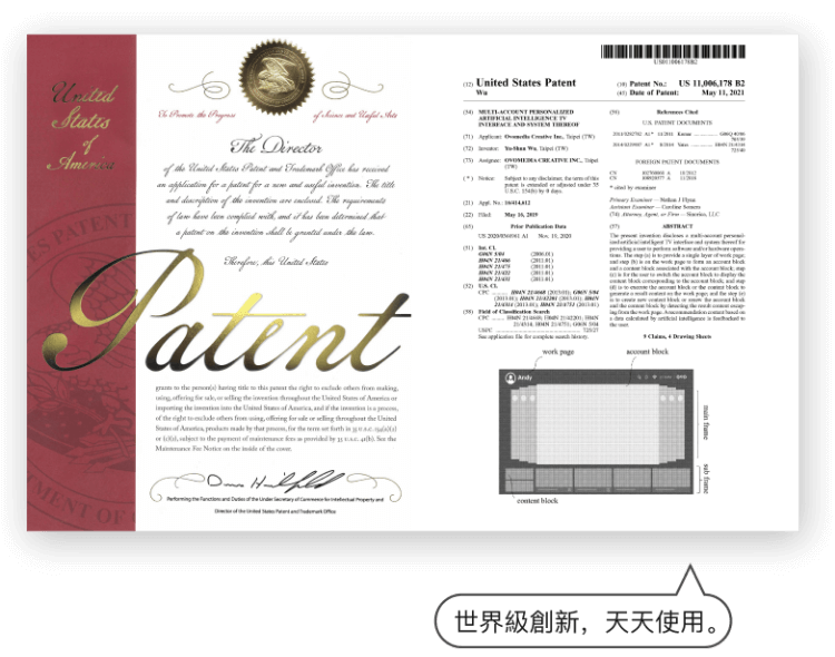 台灣原創研發,美國專利。