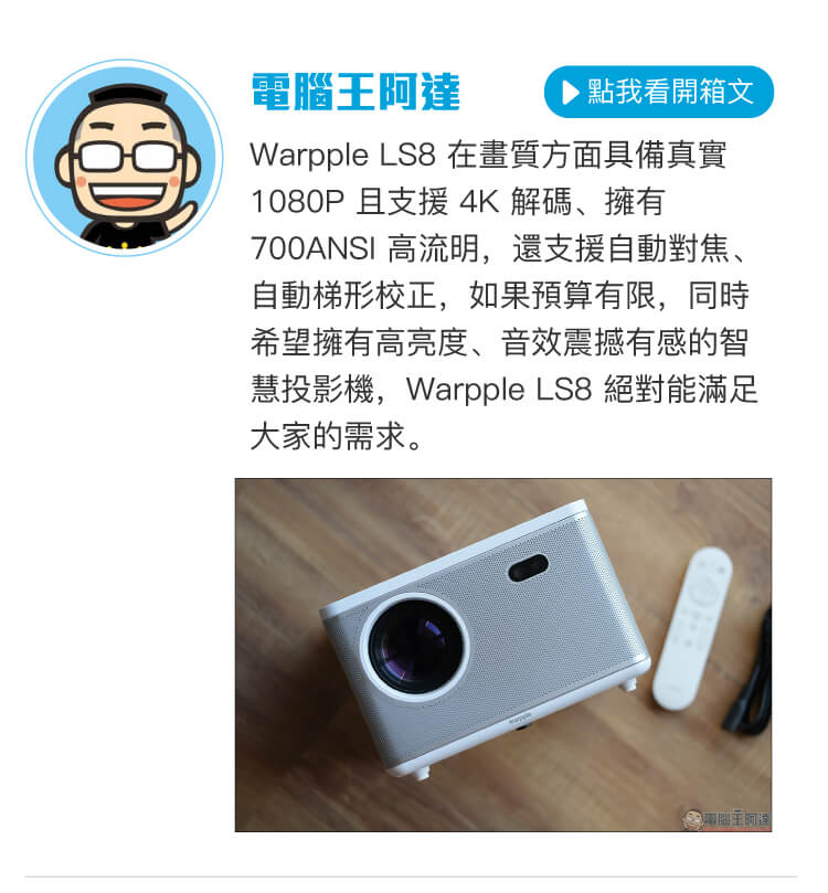【Warpple】高亮度真1080P智慧投影機 LS8 星光白 / LS8-B 午夜黑