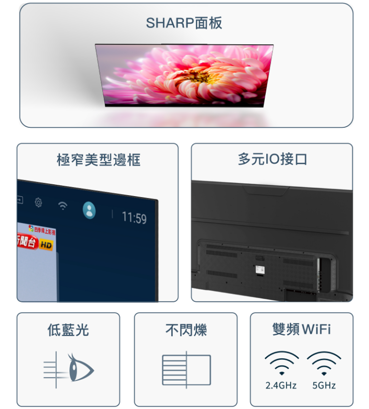 高規廣色域4K HDR電視 TA系列,超高畫質、亮暗對比清晰、色彩艷麗自然。支援 HDR10+、杜比音效、雙頻 WiFi、語音飛鼠遙控器,以及眾多貼心設計。