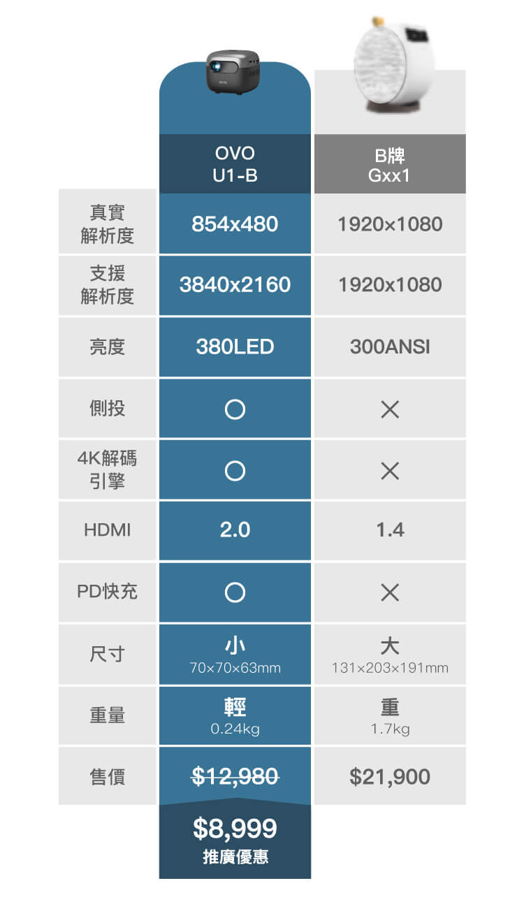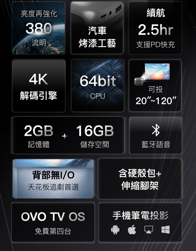 【OVO】小蘋果智慧投影機 U1-B 酷勁黑