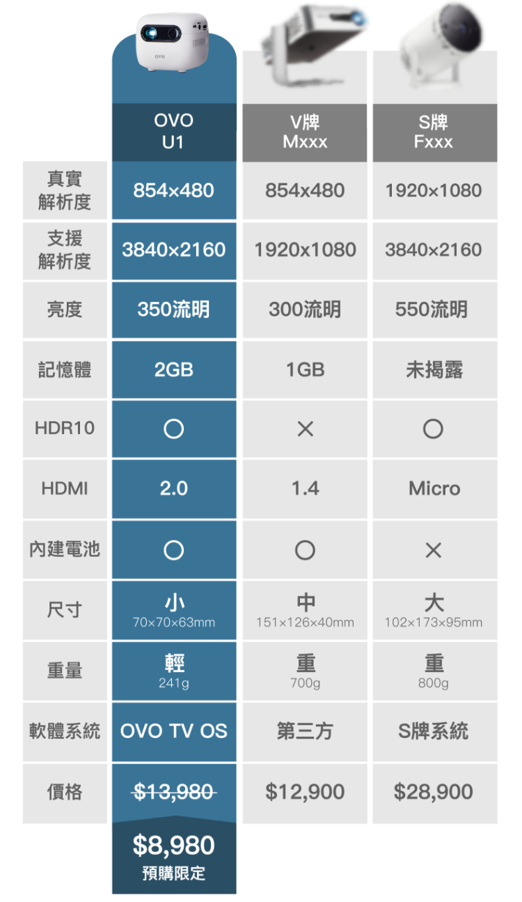 邀請您用上市後買不到的價格,贊助 OVO 小蘋果智慧投影機 U1,預計 1 月出貨。上市售價 13,980 元,贊助預購只要 8,980 元!