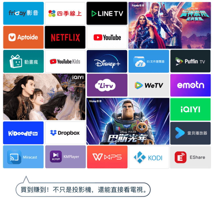 u1小蘋果智慧投影機 豐富影音內容,內建免費第四台。