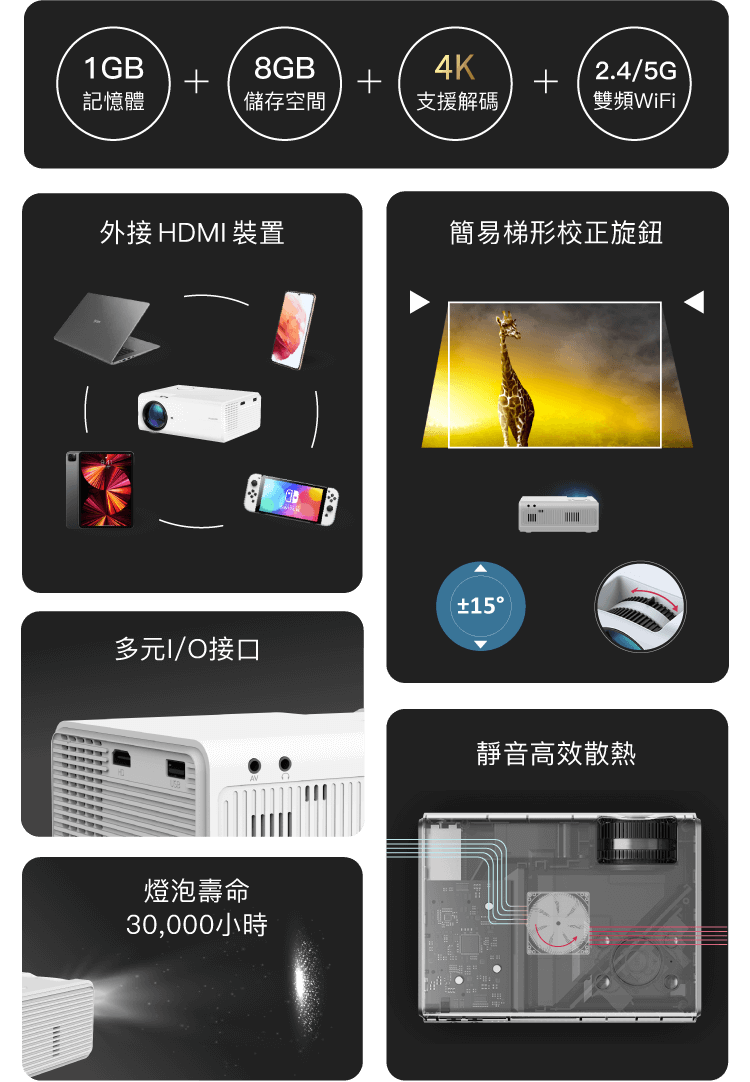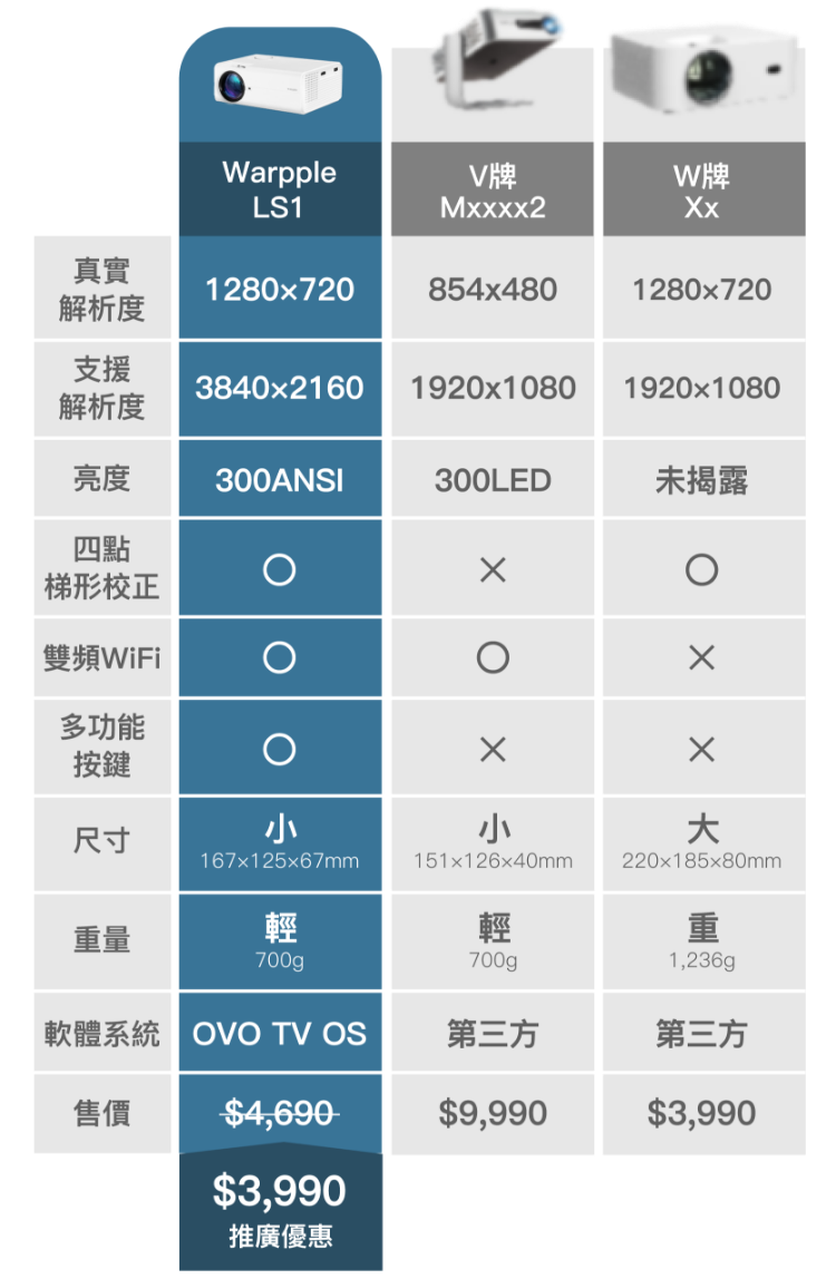 - 720P高畫質,300ANSI高亮度
