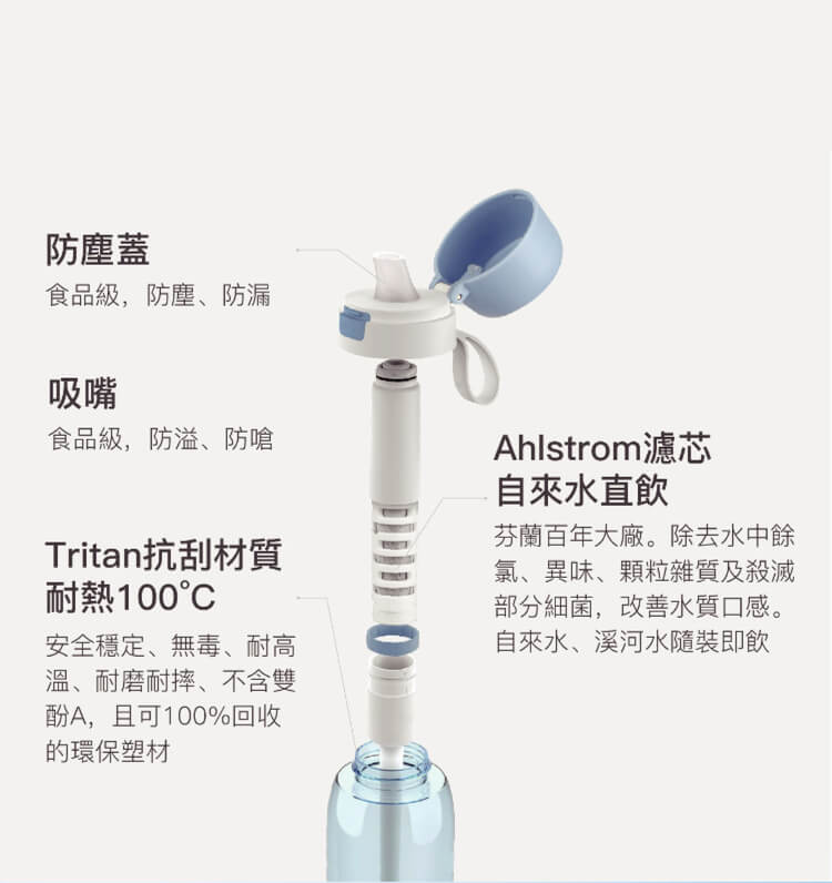 • Ahlstrom濾芯,自來水、溪河水隨裝即飲