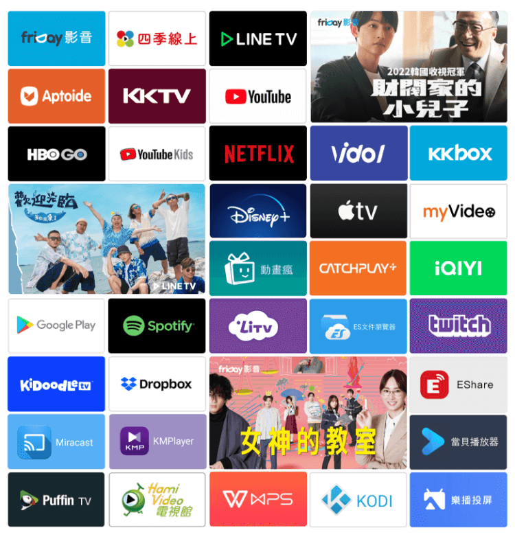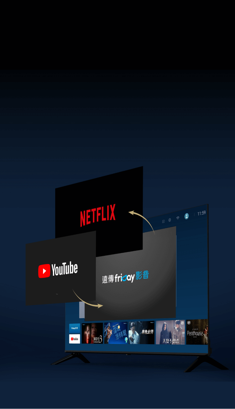 按下電源鍵,無論是 YouTube、Netflix、Disney+ 或 friDay影音等,都能直接打開,還可以天天更換、劇追完了換一個,為串流影音時代量身打造!