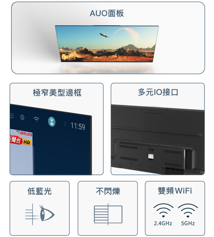 高規廣色域4K HDR電視 TA系列,超高畫質、亮暗對比清晰、色彩艷麗自然。支援 HDR10+、杜比音效、雙頻 WiFi、語音飛鼠遙控器,以及眾多貼心設計。