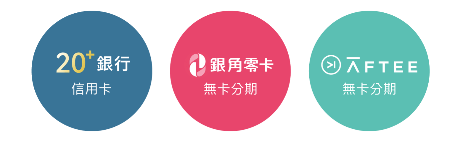 支援超過20家銀行信用卡,以及不估刷卡額度的兩大無卡分期服務。